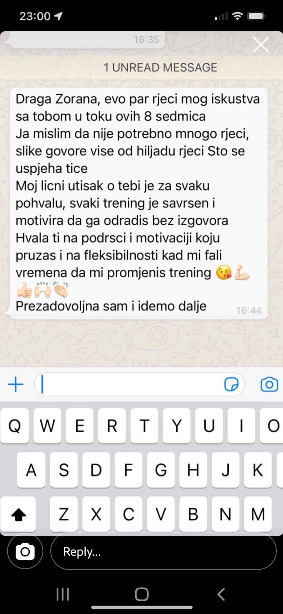 Uz Zoranu sam videla da online treninzi imaju mnoge prednosti, ne treba ti oprema ni prostor, a možeš trenirati kada god želiš. Zorana kao veliki profesionalac tačno zna kada treba nekog da dodatno pogura i motiviše do cilja.